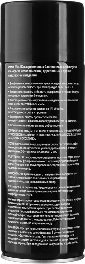 ЕРМАК Краска аэрозольная, 20 9001/4 черная матовая