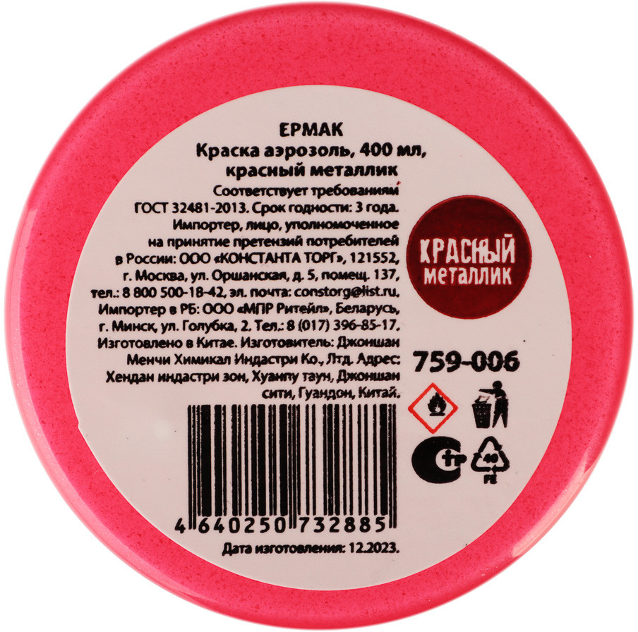 ЕРМАК Краска аэрозольная, красный металлик