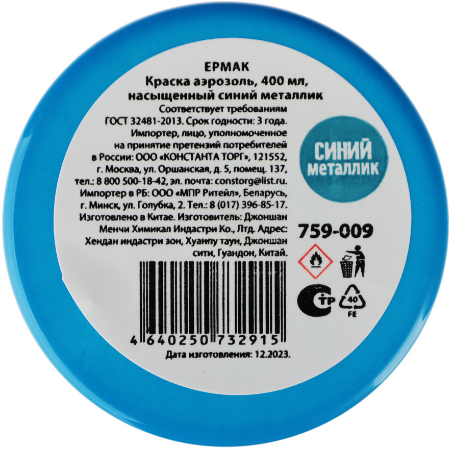 ЕРМАК Краска аэрозольная, насыщенный синий металлик