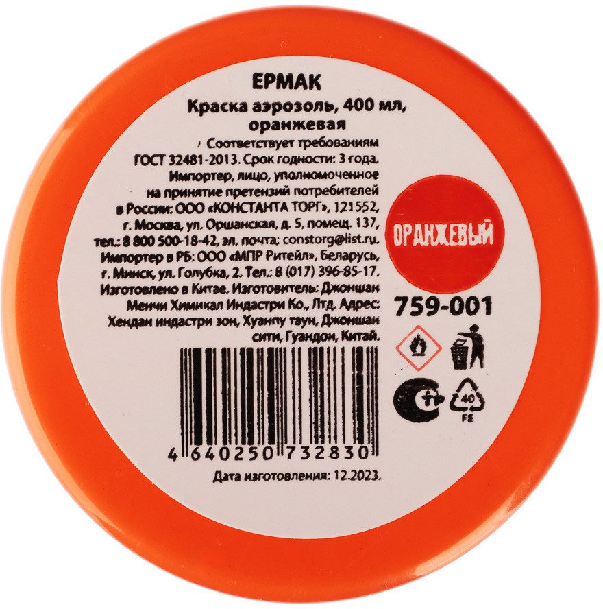 ЕРМАК Краска аэрозольная, оранжевая