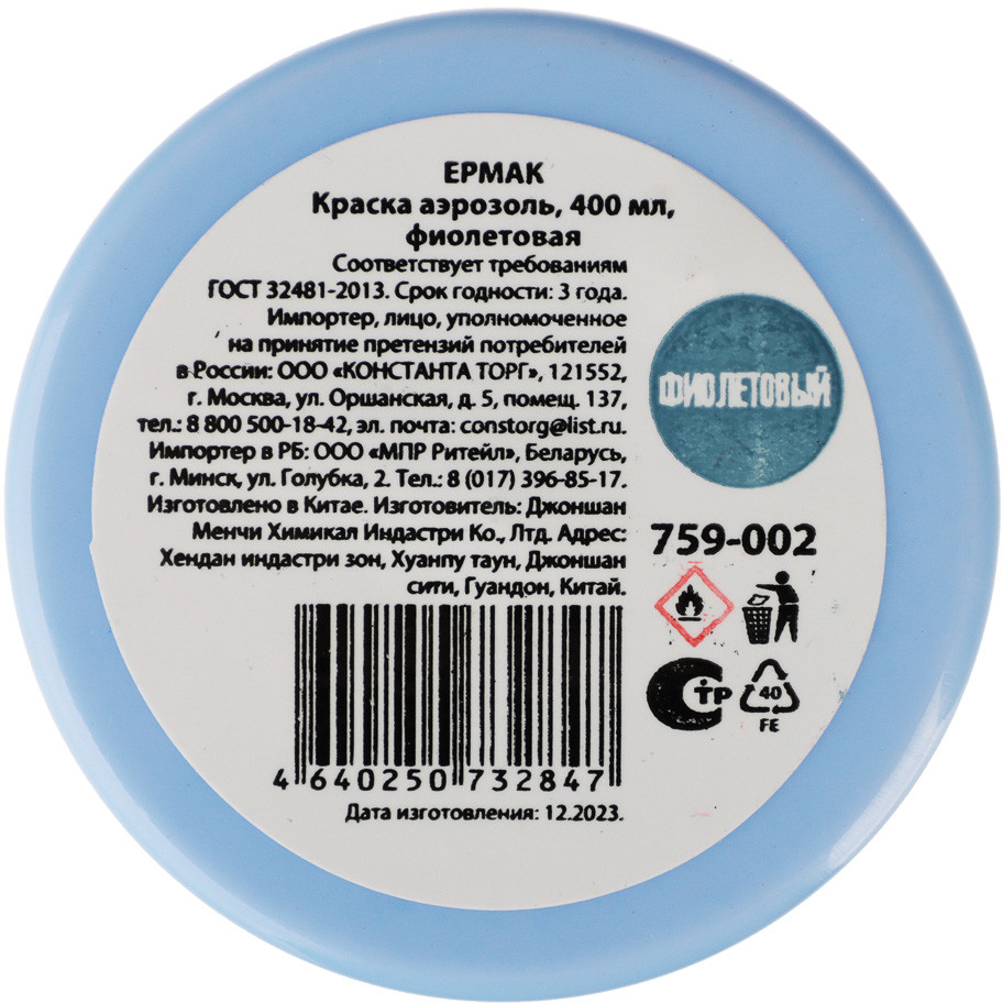 ЕРМАК Краска аэрозольная, фиолетовая