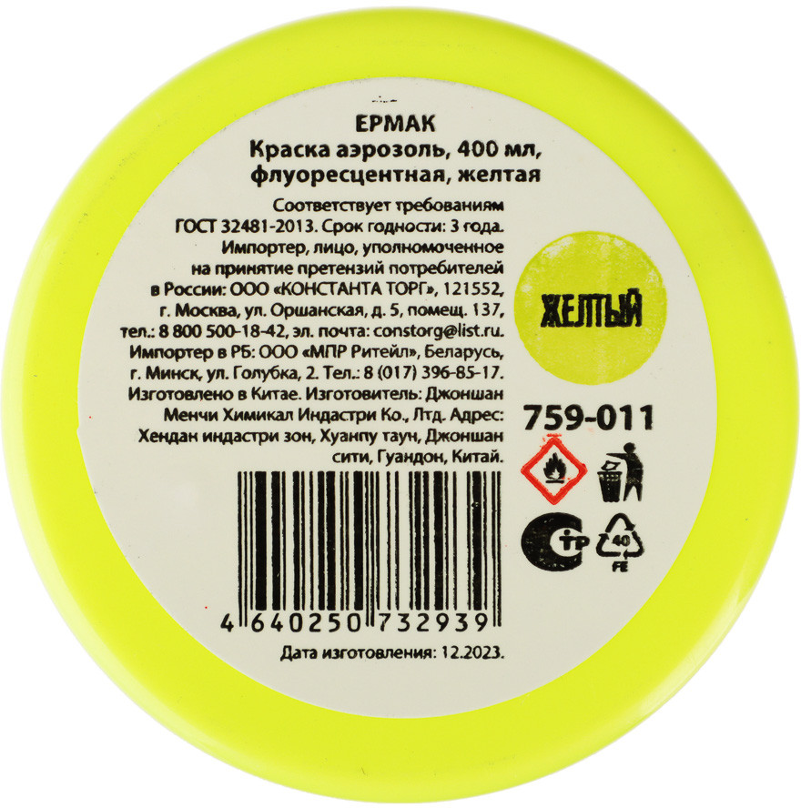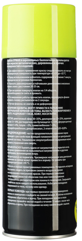 ЕРМАК Краска аэрозольная, желтая флуоресцентная