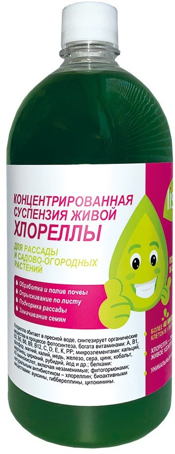 Применение: для активации процессов роста посадочного материала развести 1 часть концентрата хлореллы с 20 частями чистой воды комнатной температуры.