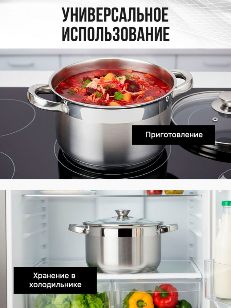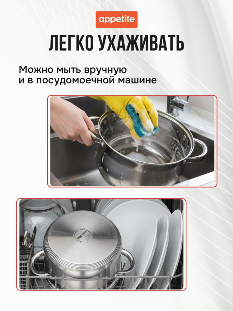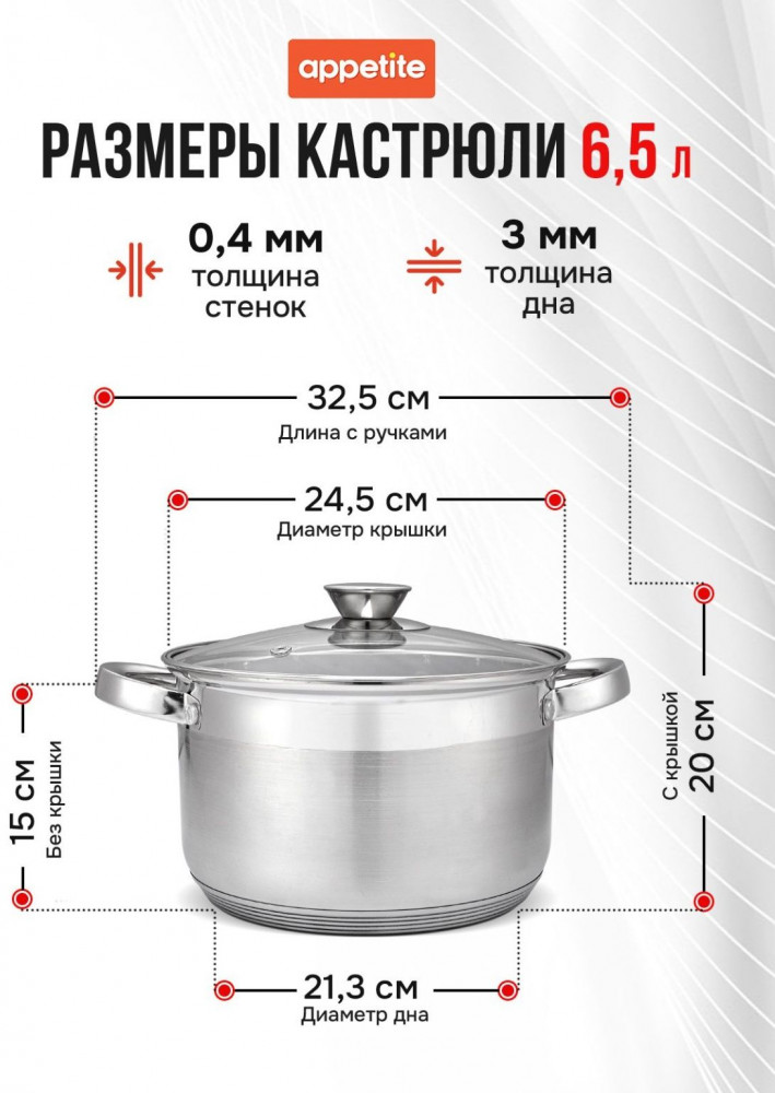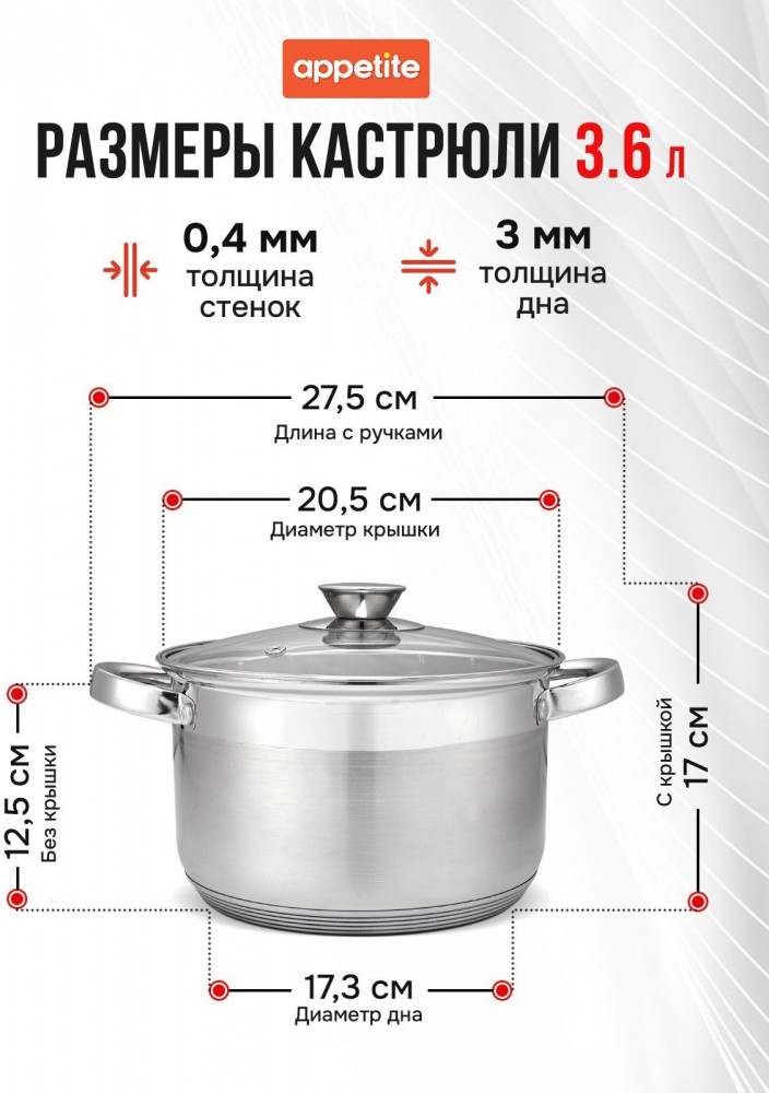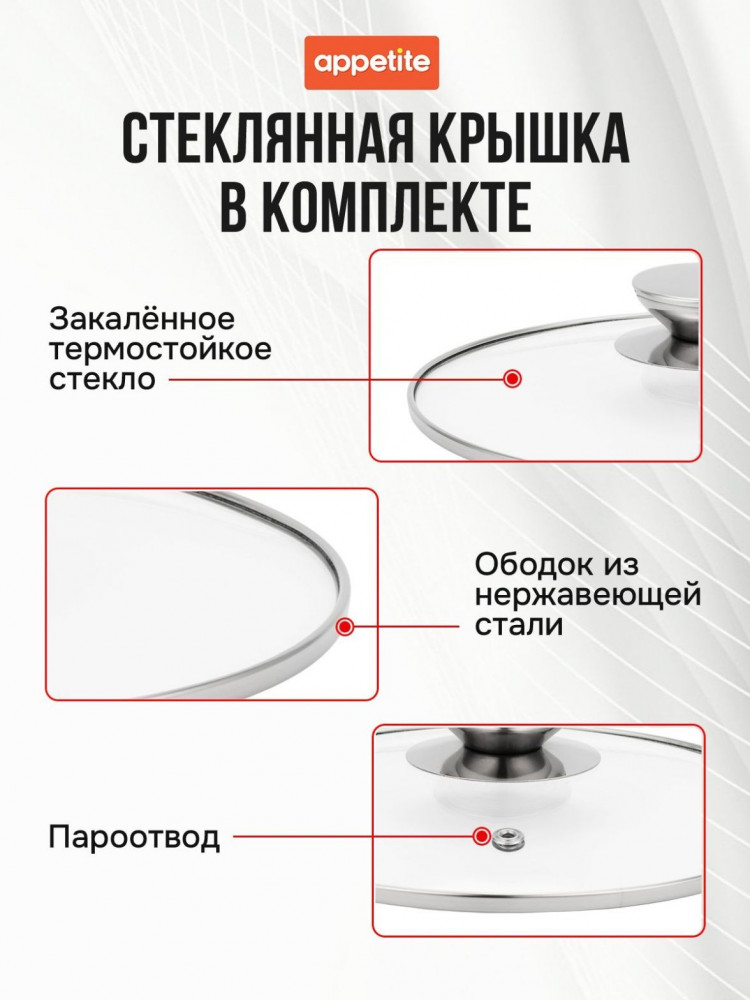 Appetite Набор кастрюль из нержавеющей стали со стеклянными крышками «Silver»-25% +606