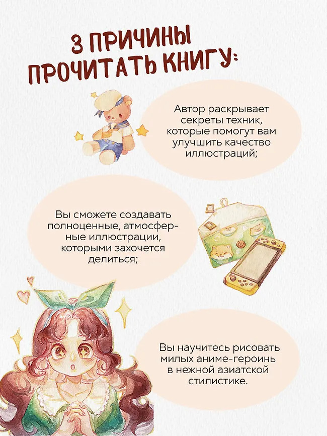 💳 Оплатить за товар можно при получении 🇰🇿 Есть бесплатная доставка по Казахстану от 1 дня 🎁 Копите бонусы с каждой покупки Серия: Твори без границ Откройте для себя волшебство акварели с книгой «Акварельные персонажи: уроки рисования от азиатских иллюстраторов» — вдохновляющим путеводителем в мир нежных красок и очаровательных аниме-героинь. Эта книга создана для тех, кто мечтает научиться передавать на бумаге мягкость света, искренность живых эмоций и красоту повседневной жизни. |