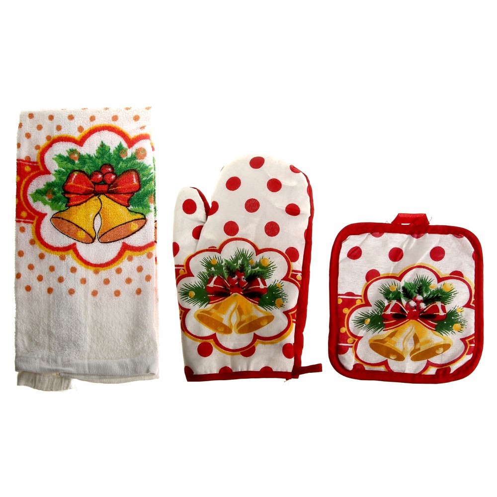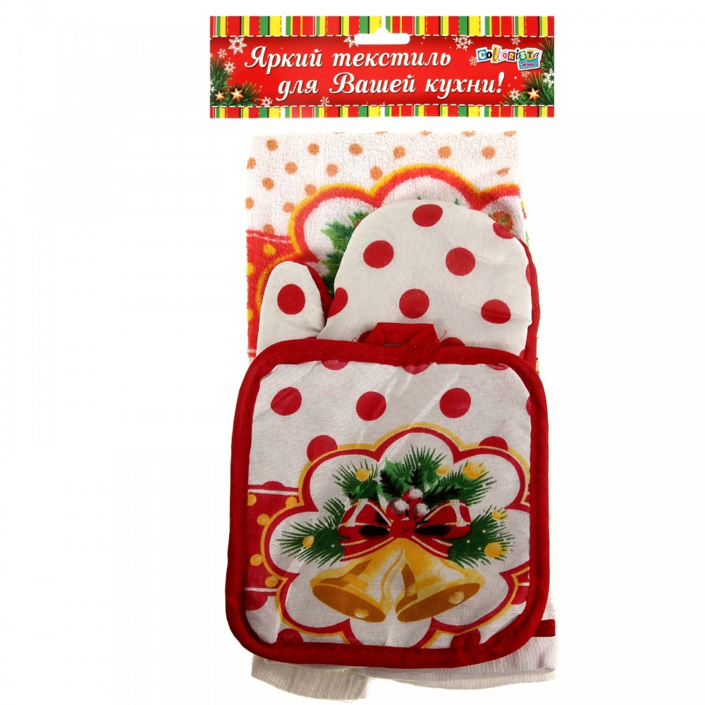 Collorista Кухонный набор «Звон»В данный момент этот товар отсутствует в продаже. Возможно, у нас найдется аналогичный или похожий товар здесь. Женщина проводит большую часть свободного времени на кухне, поэтому этот кухонный набор станет полезным презентом каждой хозяйке к Новому году. Готовить праздничный ужин с такими кухонными аксессуарами — одно удовольствие. Приятное на ощупь полотенце сделает ручки сухими, а варежка из плотного полиэстера защитит их от неприятных ощущений и ожогов, прихватка с удобной петелькой не потеряется в суете и всегда будет на своем месте. Изделия легко переносят стирки, сохраняя потребительские свойства и насыщенность красок. |