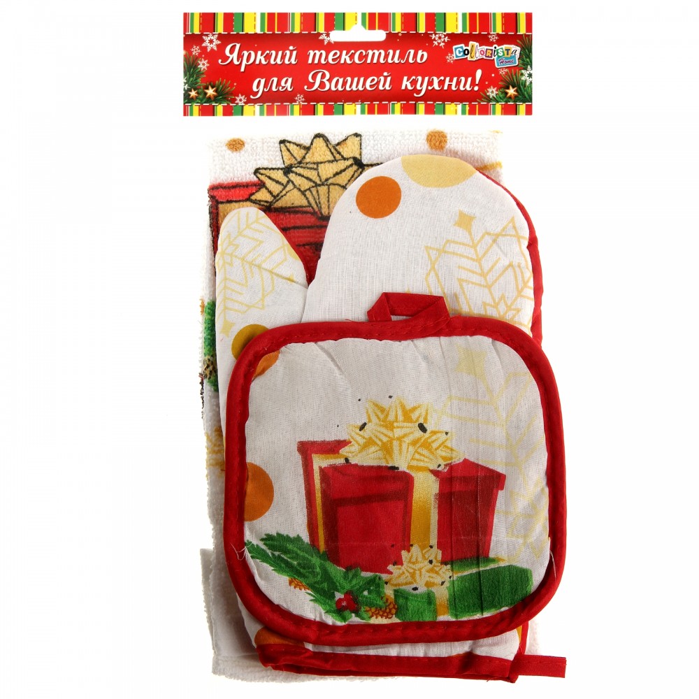 Collorista Кухонный набор «Подарок»В данный момент этот товар отсутствует в продаже. Возможно, у нас найдется аналогичный или похожий товар здесь. Женщина проводит большую часть свободного времени на кухне, поэтому этот кухонный набор станет полезным презентом каждой хозяйке к Новому году. Готовить праздничный ужин с такими кухонными аксессуарами — одно удовольствие. Приятное на ощупь полотенце сделает ручки сухими, а варежка из плотного полиэстера защитит их от неприятных ощущений и ожогов, прихватка с удобной петелькой не потеряется в суете и всегда будет на своем месте. Изделия легко переносят стирки, сохраняя потребительские свойства и насыщенность красок.  |