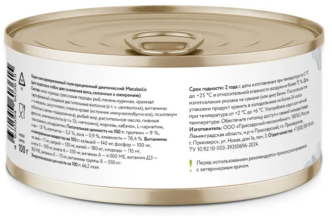 Florida Влажный диетический корм для взрослых собак для снижения веса и при склонности к ожирению «Metabolic»