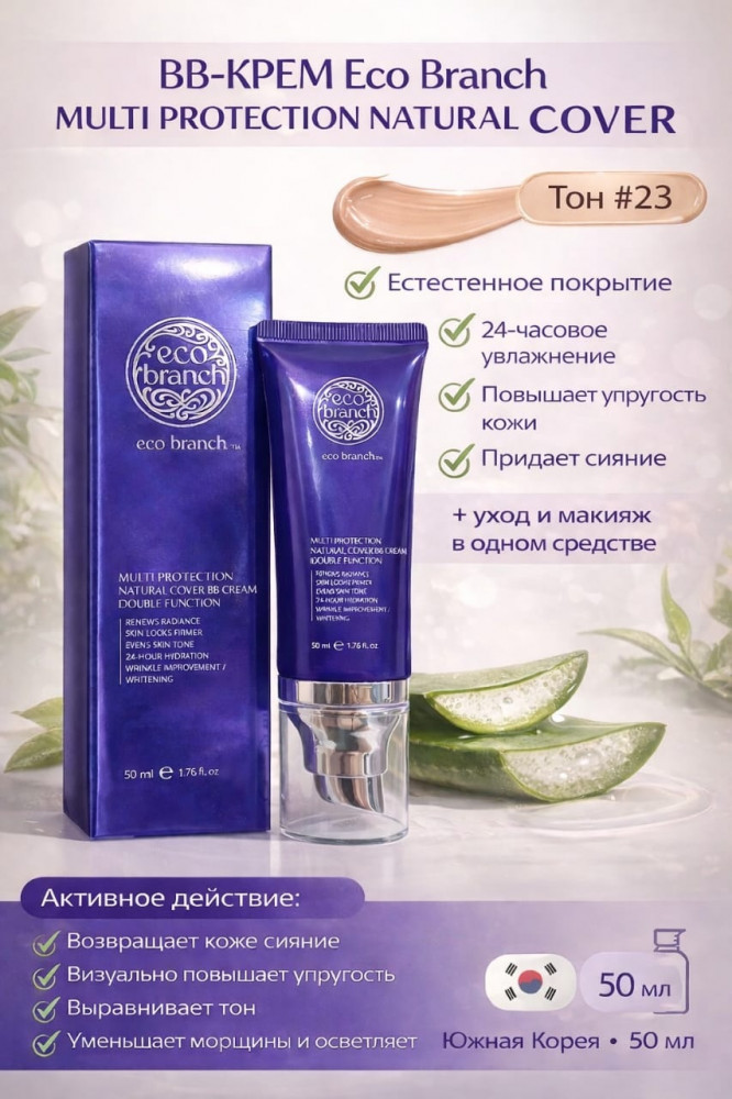 Eco Branch Увлажняющий тональный крем с эффектом сияния «Multi-Protection Natural Cover BB Cream», оттенок 23
