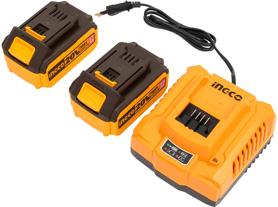 P20S — серия аккумуляторных машин на одном аккумуляторе. Т.е. вы можете иметь огромный перечень электроинструмента от INGCO (более 200 наименований) и при этом иметь одну/несколько аккумуляторных батарей.