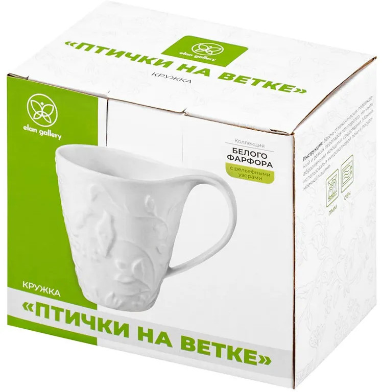 💳 Оплатить за товар можно при получении 🇰🇿 Есть бесплатная доставка по Казахстану от 1 дня 🎁 Копите бонусы с каждой покупки Серия: Птички на ветке Кружка из серии «Птички на ветке» от Elan Gallery предназначена для эстетичной сервировки вашего стола. Размер ёмкости — 13×8.7×11.5 см, объём — 350 мл. Выполнена из высококачественного белого фарфора. Он не впитывает цвет напитков и легко отмывается, благодаря чему надолго сохранит свою белизну. Поверхность изделия украшают рельефные узоры в виде лиственных веточек и сидящих на них птичек. Имеет необычную геометрическую форму, а благодаря «впалой» поверхности ручки её приятно держать и удобно переносить. Поможет отпраздновать Широкую Масленицу со вкусом! Масленица — это чудесный повод собраться за праздничным столом и насладиться тёплой атмосферой и традиционной русской кухней. Кофейная кружка поможет провести множество приятных завтраков с капучино и латте, а также уютные чайные вечера с конфетами, вафлями, другими десертами и сладостями. Подойдёт ценителям чая и кофе, которые любят пить из красивой и необычной посуды. Согрейтесь зимой любимым горячим напитком: какао с маршмэллоу, ягодным чаем, горячим шоколадом. Летом освежитесь домашним лимонадом или морсом. Декоративное изделие поможет добавить эстетики любому чаепитию. |