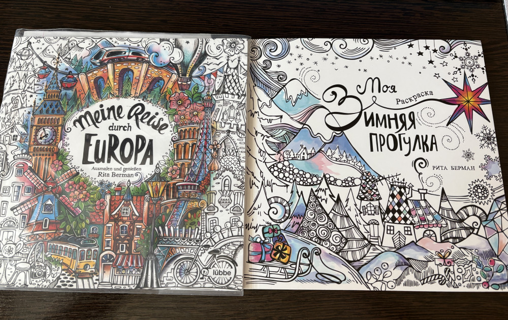 Огромный плюс данной книги, что такие авторы начали выпускаться в русских изданиях, так как это очень сильно экономит бюджет-оригинал нужно заказывать с Германии, что выходит очень не дешево. А вот качество я сравню с оригиналом. В оригинальной раскраске бумага лучше, плотнее, и из за плотности оригинал кажется более набитым. По фото корешков видно, насколько объемней идет оригинал. Плотность бумаги дает возможность пользоваться акварелью послойно, не боясь, что протечет на другую иллюстрацию. В альпине бумага тоже вроде как плотная, но рисунки просвечивают, а значит, что акварелью надо пользоваться аккуратно, чтоб не испортить иллюстрацию с другой стороны. Также на оригинале акварель ложится просто чудесно, не впитывает моментом, не оставляет пятен. На этой бумаге акварель моментом впитывается и оставляет пятно, которое при размывании портит бумагу и она скатывается комочками. А ведь именно бумага ценится в раскрасках для взрослых, чтобы получить не просто раскрашенную картинку, а настоящее произведение😊 Данная версия пойдет для ребёнка-карандашами почиркать , и не жалко😁 Все свои книги я купила у Риты напрямую, и поэтому мое мнение-что я все же лучше переплачу за оригинал, чтобы не ограничивать себя в материалах, не расстраиваться из за испорченных иллюстраций и получить удовольствие от полученных работ 👍🏽