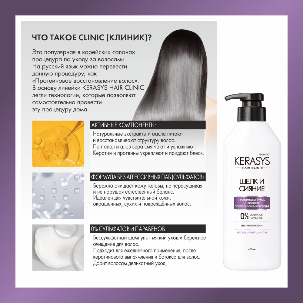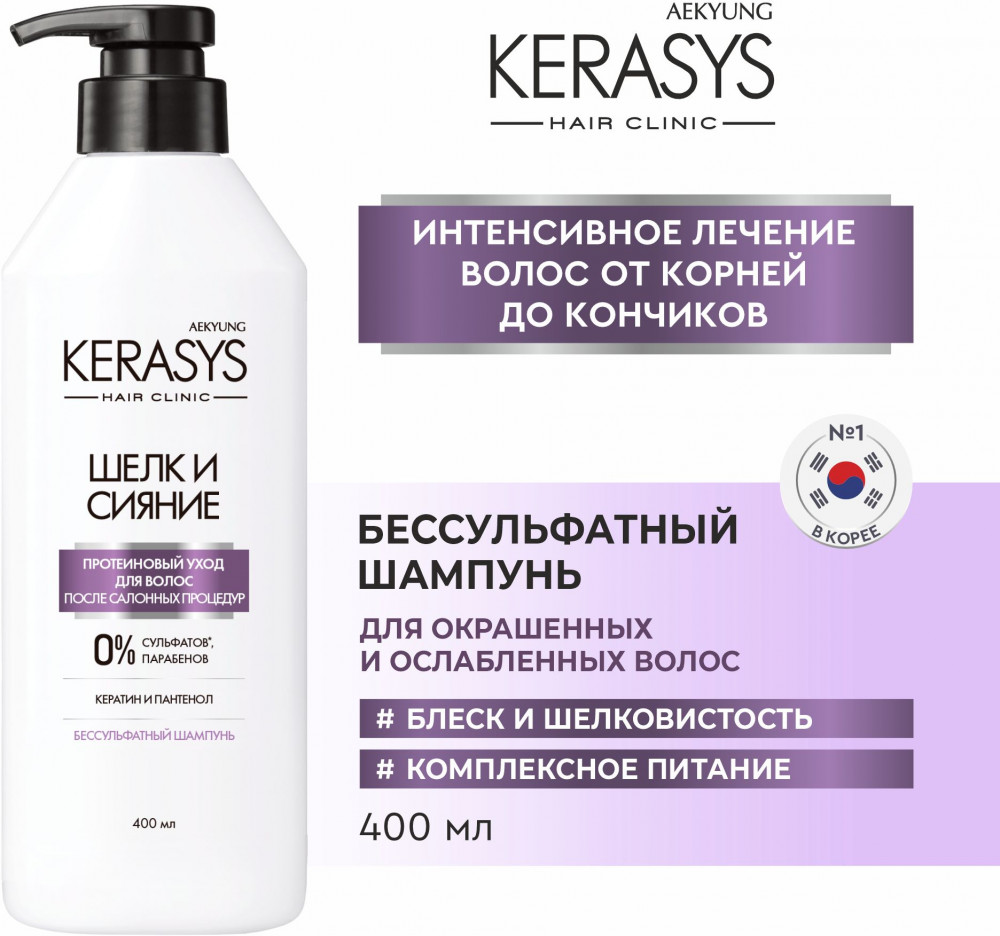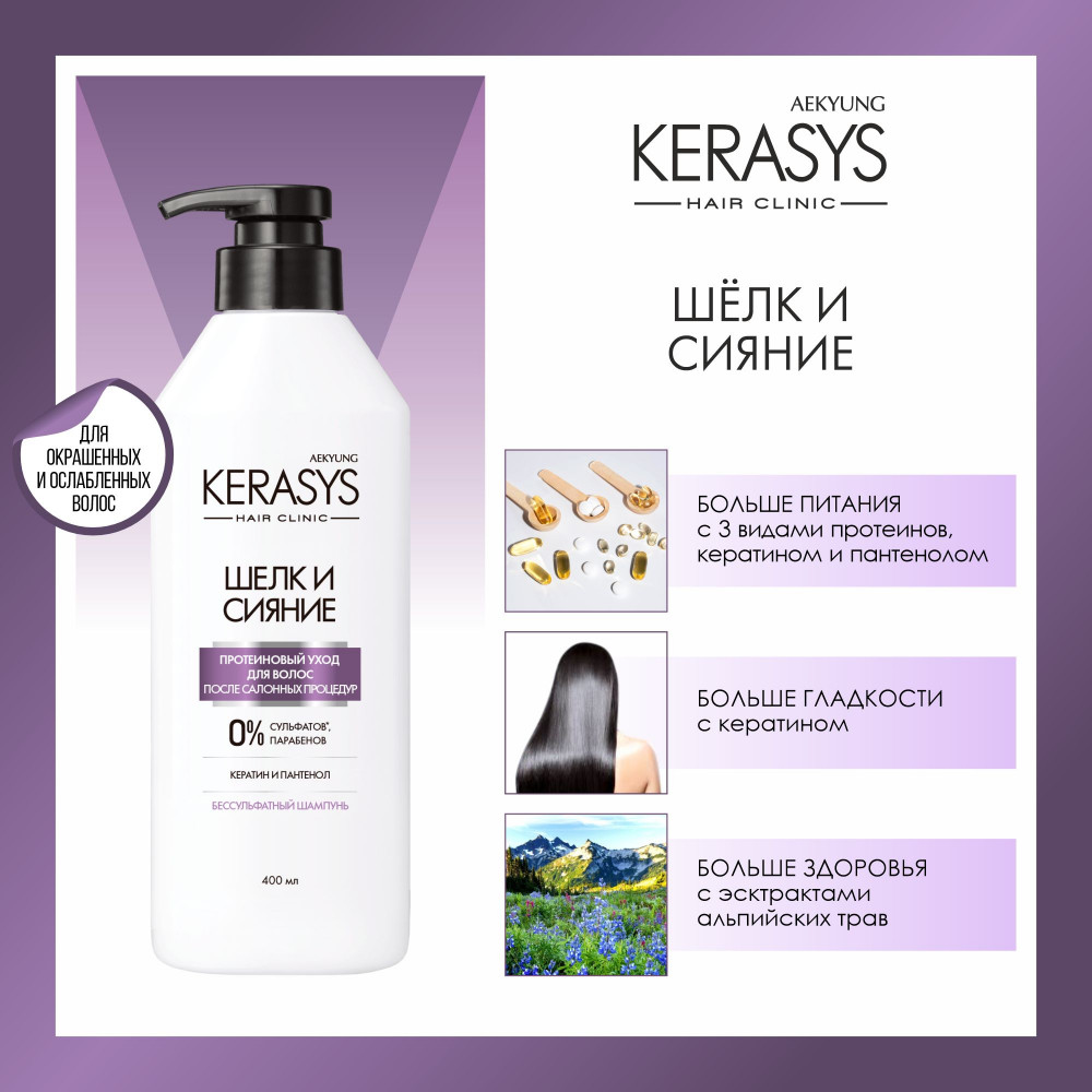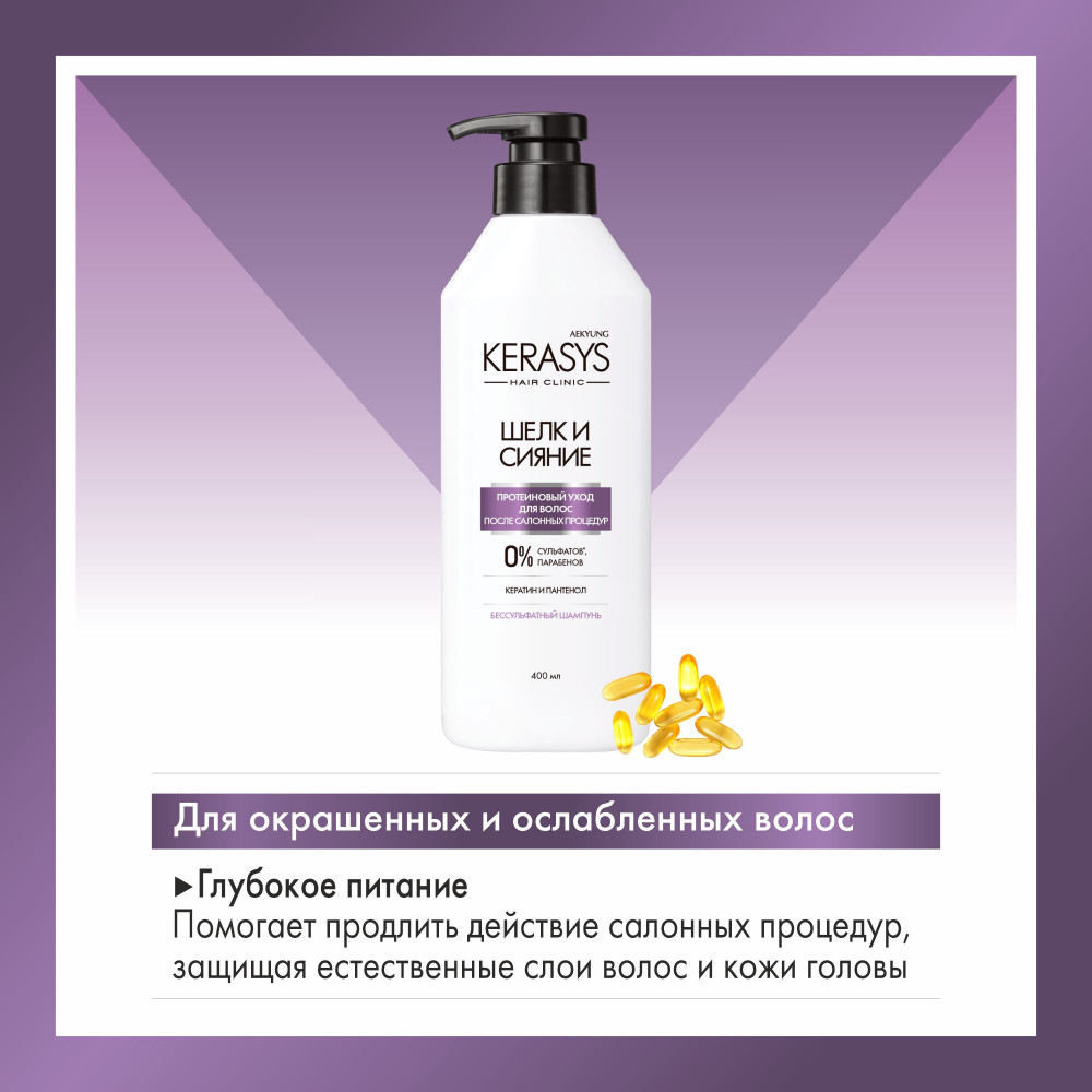 Kerasys Шампунь для окрашенных и ослабленных волос бессульфатный «Шелк и сияние»
