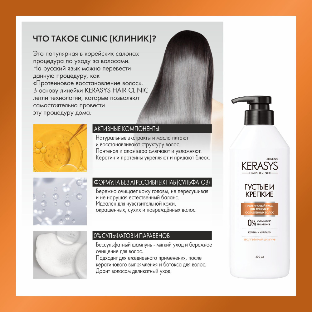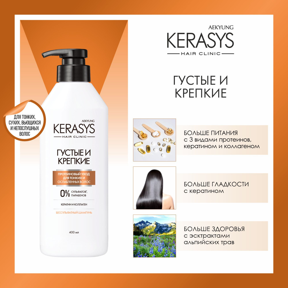 Kerasys Шампунь для волос бессульфатный «Густые и крепкие»
