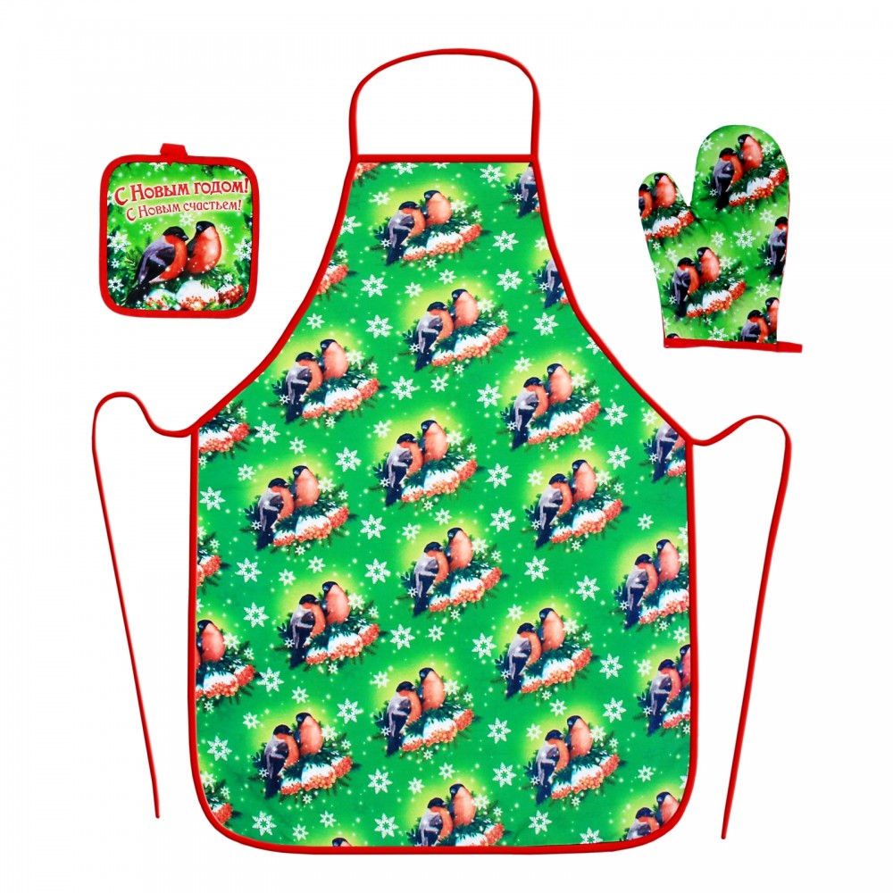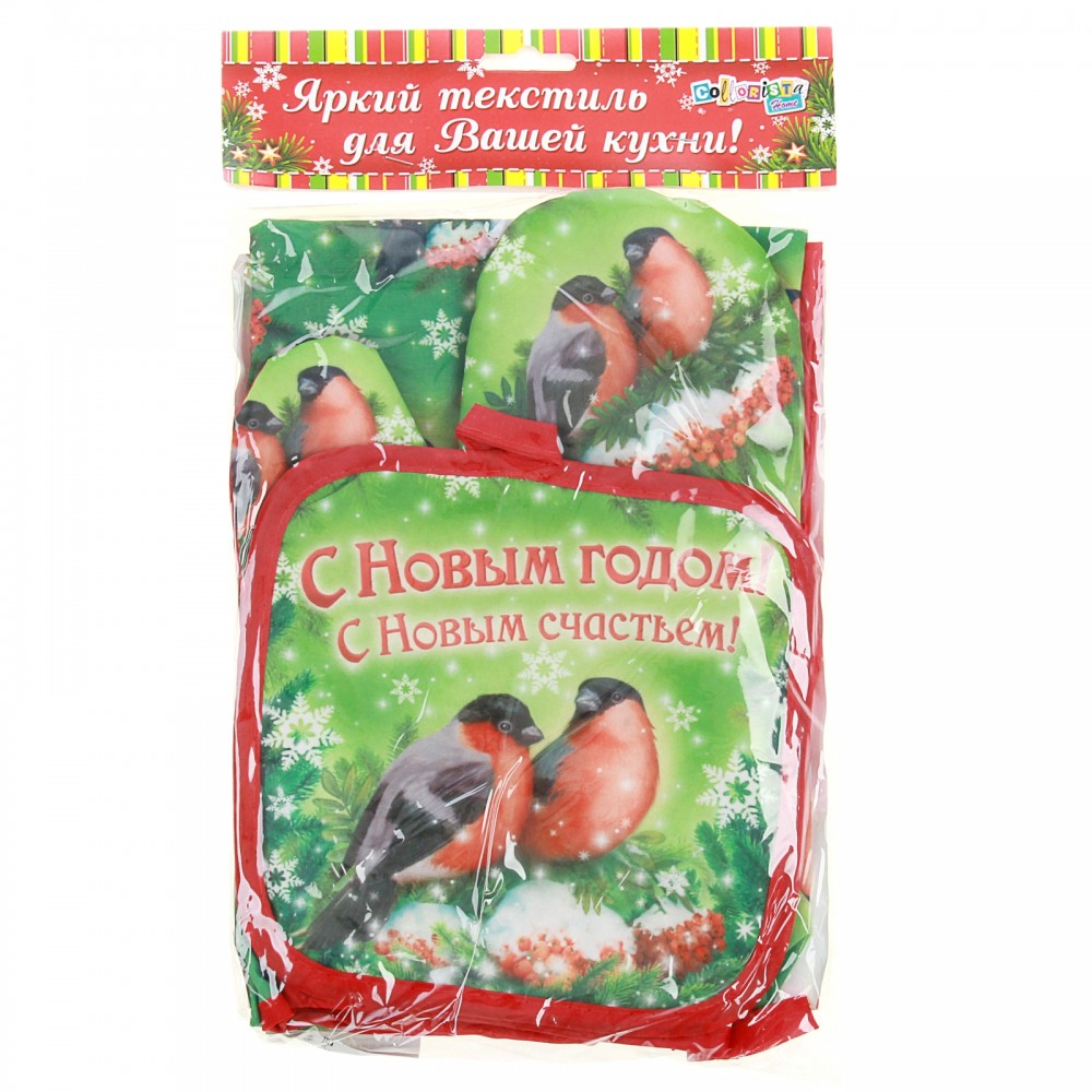 Collorista Кухонный набор «С Новым счастьем»В данный момент этот товар отсутствует в продаже. Возможно, у нас найдется аналогичный или похожий товар здесь. Кухонный набор защитит ваши руки от ожогов, одежду от загрязнений, а также станет оригинальным дополнением к интерьеру вашей кухни. Теперь готовить станет намного приятней. Яркая расцветка поднимет настроение и вдохновит на создание кулинарных шедевров. Изделия изготовлены из плотного, прочного материала. Они легко переносят стирку и глажку, к тому же не требуют |