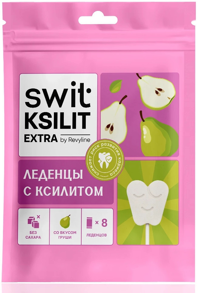 Леденцы на палочке SWIT KSILIT extra — это сладкое удовольствие без вреда для зубов. Натуральный сахарозаменитель ксилит подавляет рост бактерий, снижая риск развития кариеса, способствует укреплению эмали, снижению кислотности в полости рта, стимуляции слюноотделения.