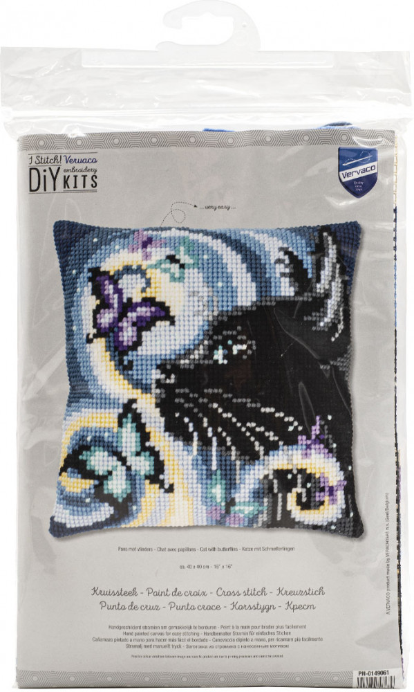 Vervaco Набор для вышивания подушки «Кошка и бабочки»-20% +568