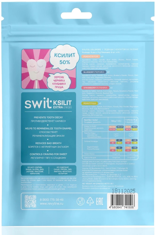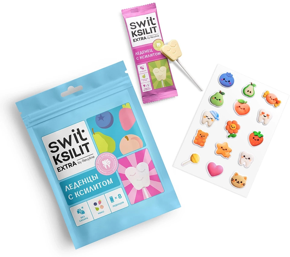 Леденцы на палочке SWIT KSILIT extra — это сладкое удовольствие без вреда для зубов. Натуральный сахарозаменитель ксилит подавляет рост бактерий, снижая риск развития кариеса, способствует укреплению эмали, снижению кислотности в полости рта, стимуляции слюноотделения.