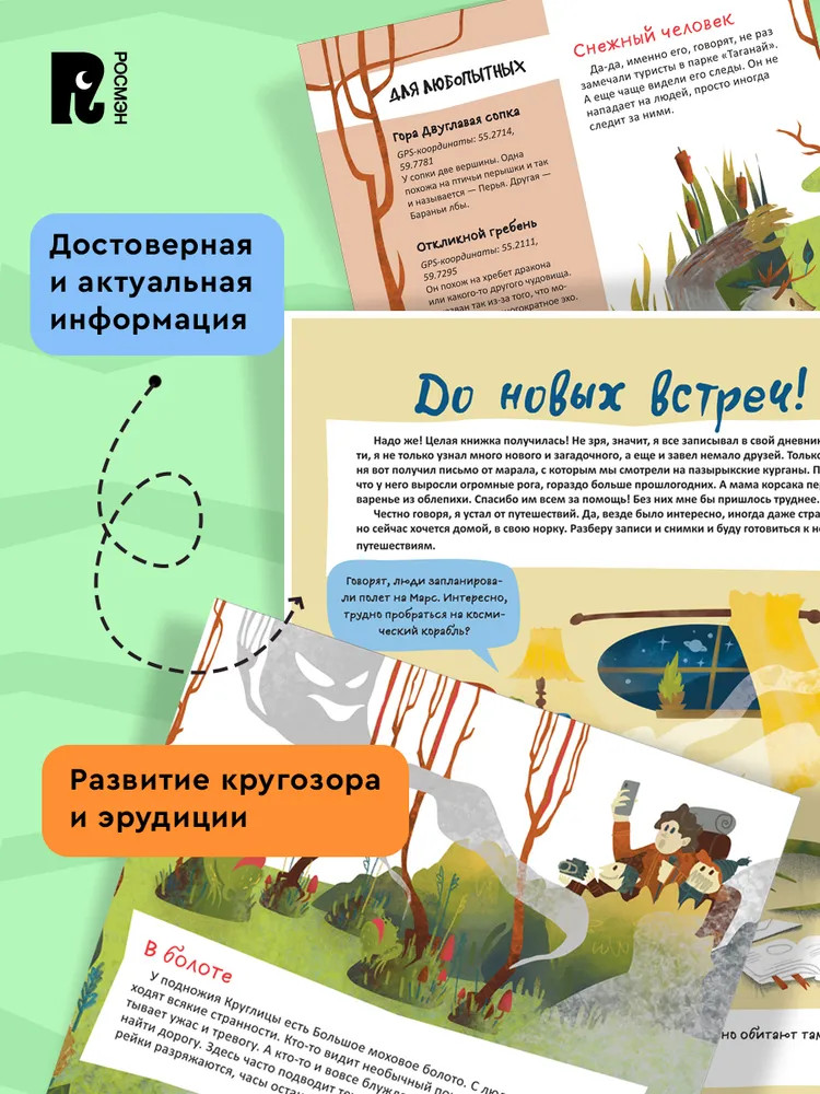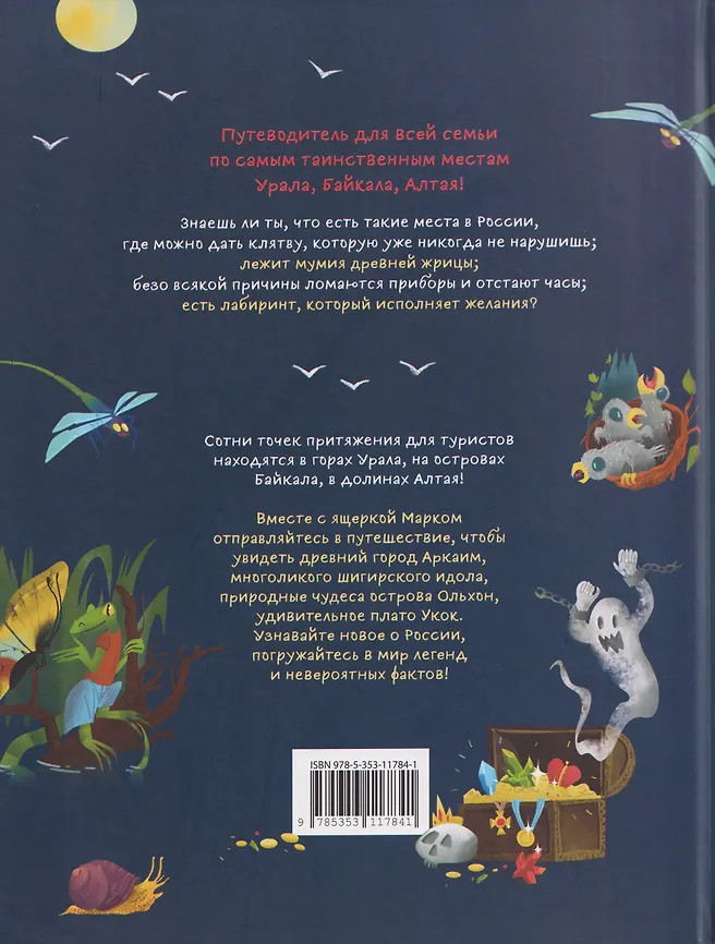 💳 Оплатить за товар можно при получении 🇰🇿 Есть бесплатная доставка по Казахстану от 1 дня 🎁 Копите бонусы с каждой покупки Виртуальное путешествие по загадочным местам России вместе с любознательной ящеркой Марком способно надолго и всерьез увлечь читателя, пробудить в нем интерес к истории и культуре российских регионов, желание посетить самые далекие уголки страны. Легенды, призраки, старинные клады, древние обряды – все это словно оживает на страницах, но книга остается при этом научно-познавательной и дает читателю много интереснейшей уникальной информации. Стильные иллюстрации П. Надъярной добавляют изданию таинственного очарования. |