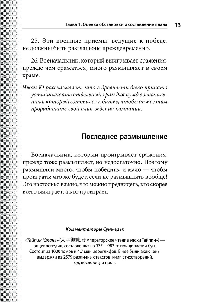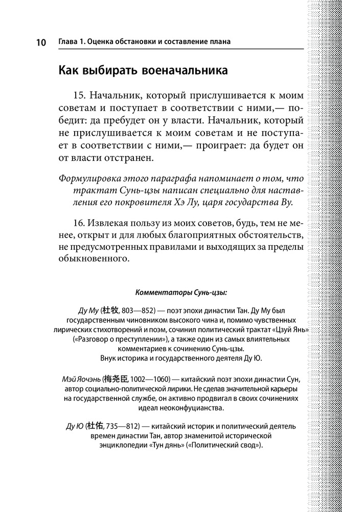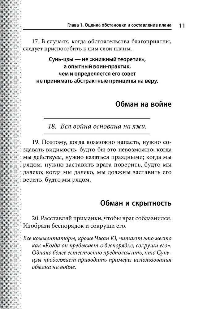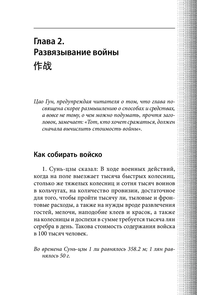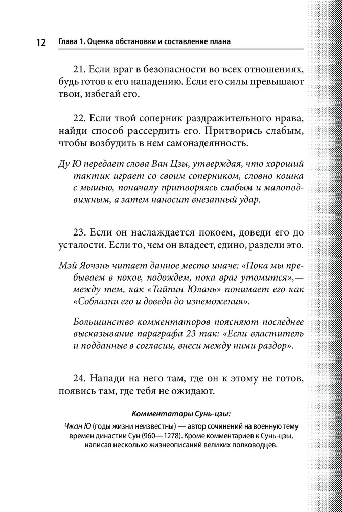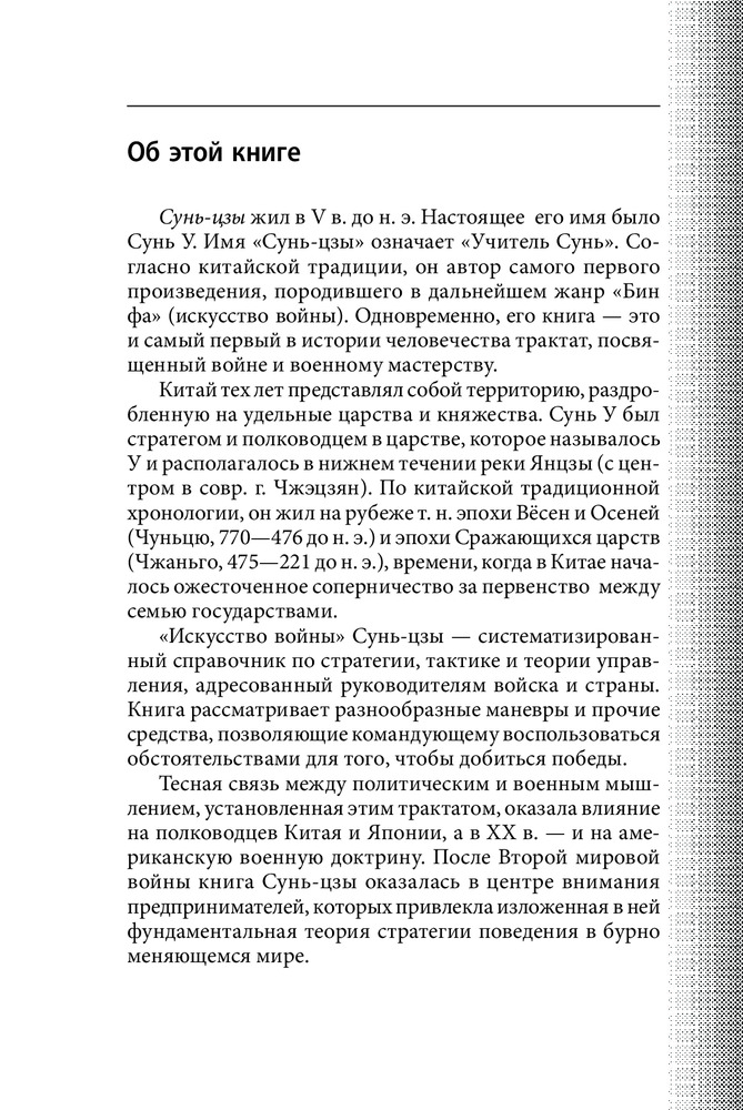 Отличная книга! Давно хотела ее приобрести. Читала о стратагемах Сунь Цзы в интерпретации О. Евтихова, применительно к тренингу развития лидерских качеств. Оригинал по-своему интересен и полезен.