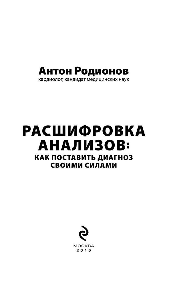 Расшифровка анализов: как поставить диагноз своими силамиВ данный момент этот товар отсутствует в продаже. Возможно, у нас найдется аналогичный или похожий товар здесь. Серия: Академия доктора Родионова Академия доктора Родионова адресована тем, кто иногда заглядывает в свою амбулаторную карту или историю болезни. Когда у вас после сдачи анализов на руках много разных бумажек после разнообразных исследований, надо понять, где нестрашное отклонение, а когда пора бить тревогу. Доктор Родионов, как всегда, обстоятельно и понятно объясняет это и снимает ненужное волнение. Каждый, у кого уже есть 3 книги Академии доктора Родионова, конечно, захочет пополнить свои медицинские знания и узнать, как сделать исследование максимально полезным и не выбрасывать деньги на ветер, заботясь о своем здоровье. |