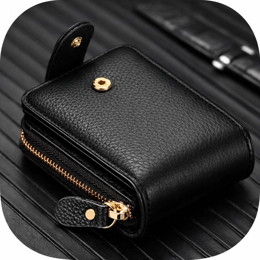 Кошелёк мужской на молнии с отделениями для карт и купюр