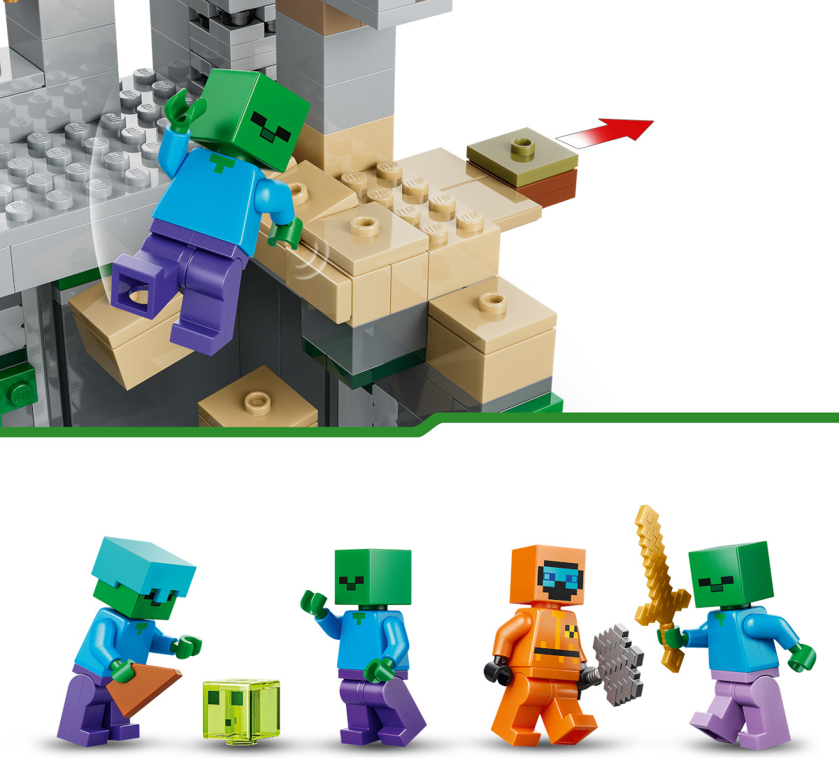💳 Оплатить за товар можно при получении 🇰🇿 Есть бесплатная доставка по Казахстану от 1 дня 🎁 Копите бонусы с каждой покупки Серия: LEGO Minecraft Строительный набор «Подземелье зомби» LEGO® Minecraft® (21587) позволяет мальчикам и девочкам в возрасте от 8 лет сразиться с ордой зомби Minecraft. Дети отправляются в подземелье зомби, полное персонажей Minecraft и аутентичных игровых деталей с забавными функциями и аксессуарами. В этом подземелье из пустынного биома Minecraft тебя ждет Странник пустошей с алмазной киркой, булавой и в незеритовой броне, а также слизняк и три зомби, один из которых в зачарованных поножах и с золотым мечом, а еще один — в алмазном шлеме. У подземелья есть практические функции: вращающаяся комната, из которой появляются зомби, и сдвигающаяся деталь, вызывающая камнепад. Среди других аксессуаров, вдохновляющих на творческую игру, есть верстак, факел и сундук с хлебом, костями и гнилым мясом. Этот набор станет отличным подарком для игроков в Minecraft, строителей LEGO и поклонников игровой атрибутики. А с приложением LEGO Builder дети смогут с уверенностью осуществлять сборку — приближать, вращать модели в 3D и отслеживать прогресс с помощью простых цифровых инструкций. Набор содержит 284 детали. |
