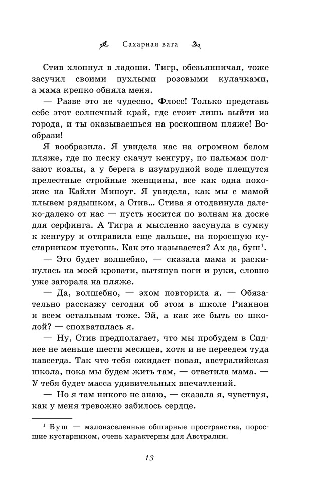 В данный момент этот товар отсутствует в продаже. Возможно, у нас найдется аналогичный или похожий товар здесь. Серия: Жаклин Уилсон. Мировой бестселлер для девочек Кто не мечтает пожить в Австралии? Солнечные пляжи, океан, новые незнакомые места, экзотические животные, куча интересного! Но у Флосс эта мысль вызывает ужас. Нет, она хотела бы побывать в новой стране, поплавать в океане, познакомиться с новыми друзьями. А вот чего она совершенно не хочет, так это расставаться с папой. Ведь ее родители живут раздельно и в Австралию собирается переезжать мама с новым мужем, а значит Флосс больше не сможет проводить с папой выходные. Это несправедливо! Ну почему взрослые никогда не считаются с детьми? А если Флосс просто откажется куда-либо ехать? Что из этого выйдет? |