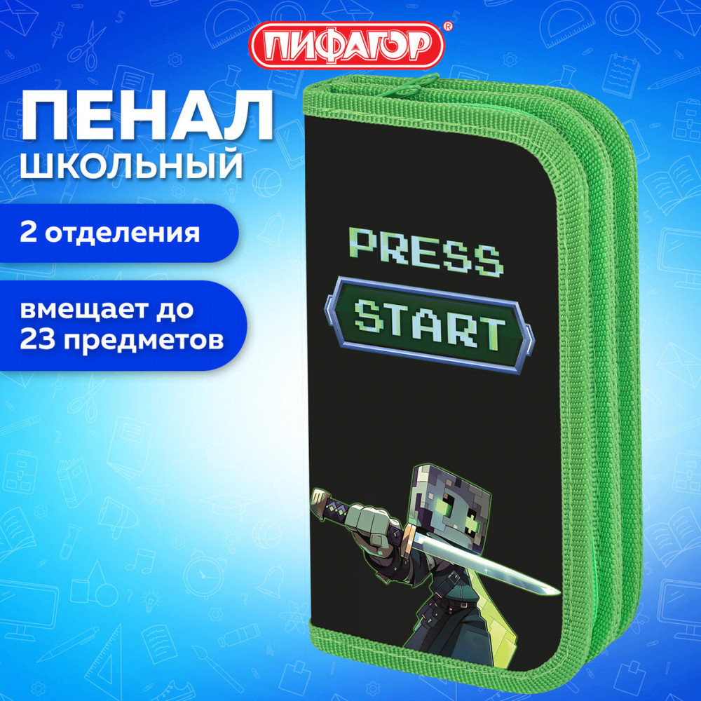 💳 Оплатить за товар можно при получении 🇰🇿 Есть бесплатная доставка по Казахстану от 1 дня 🎁 Копите бонусы с каждой покупки Пенал стандартного размера Пифагор с двумя отделениями выполнен из ламинированного картона. Яркий дизайн. Удобные молнии с металлическим бегунком с трех сторон, прочные резинки для предметов. Вмещает до 25 предметов. |