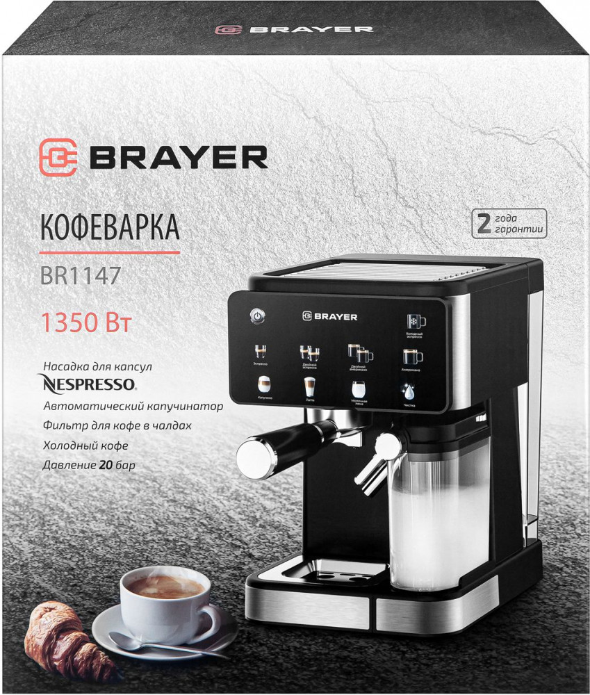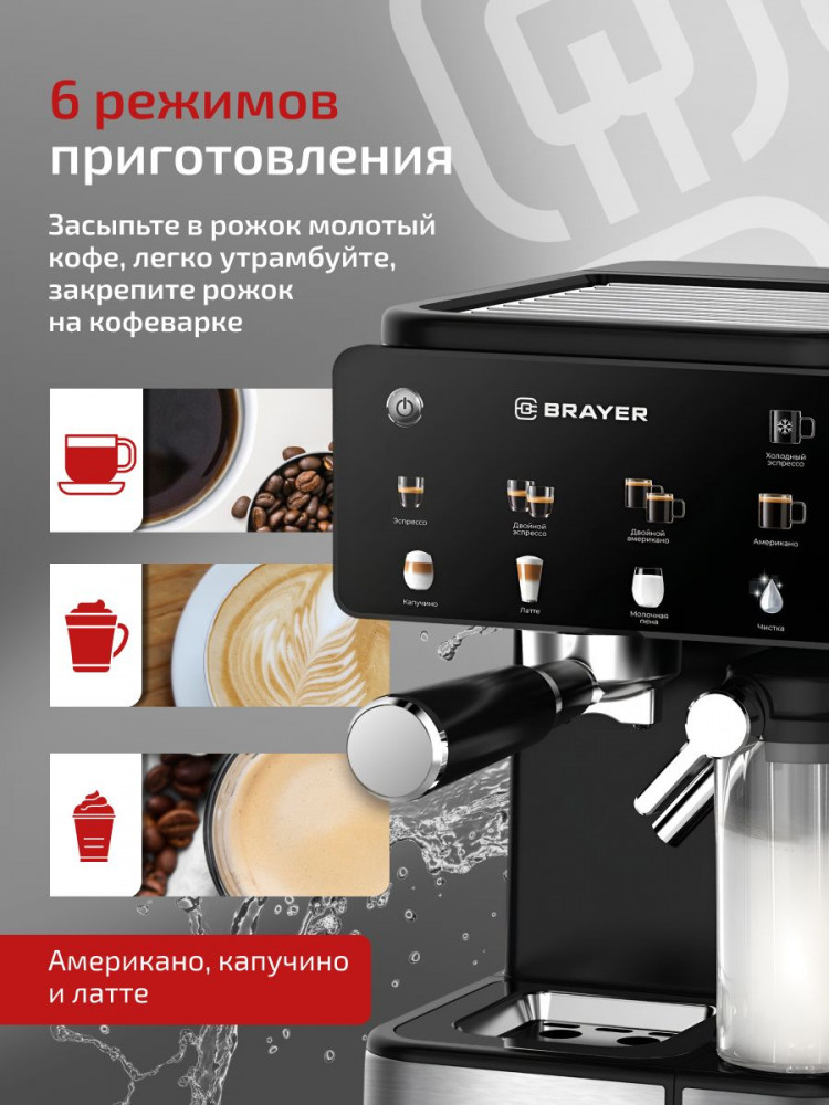 Brayer Кофеварка рожковая BR1147-35% +2078