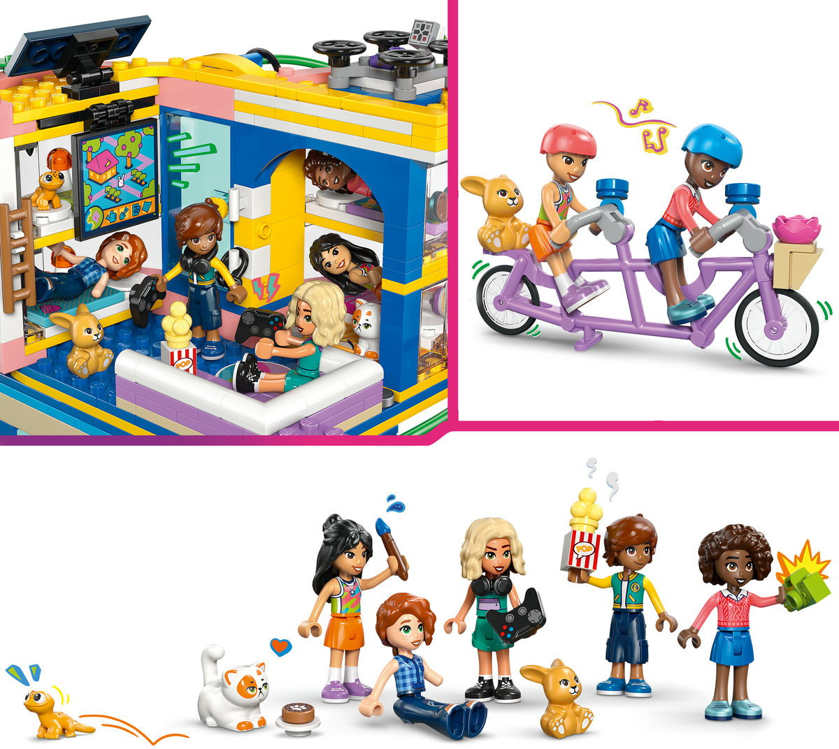 💳 Оплатить за товар можно при получении 🇰🇿 Есть бесплатная доставка по Казахстану от 1 дня 🎁 Копите бонусы с каждой покупки Серия: LEGO Friends Дайте волю воображению детей в возрасте от 8 лет, которые будут исследовать игрушечный набор «Клуб подружек из Хартлейк-Сити» LEGO® Friends (42689). Девочки и мальчики смогут придумывать секретные задания и бесконечные истории с помощью этого детского набора. Вас ждут приключения на тарзанке, горке и скалодроме. Разгадайте загадку, используя спрятанный компьютер и дрон. Ухаживайте за питомцами, занимайтесь творчеством за мольбертом или готовьте закуски на кухне. Чем бы ни увлекались дети, они смогут найти себе занятие по душе! В этом наборе для сборки есть 5 мини-куколок, а также кошка, геккон и кролик. Здесь также множество аксессуаров, которые вдохновляют детей на творчество: миски и поилки для животных, аппарат для попкорна, телевизор с игровой приставкой и джойстиками, холодильник, пончики, клубника, вафли и многое другое. |