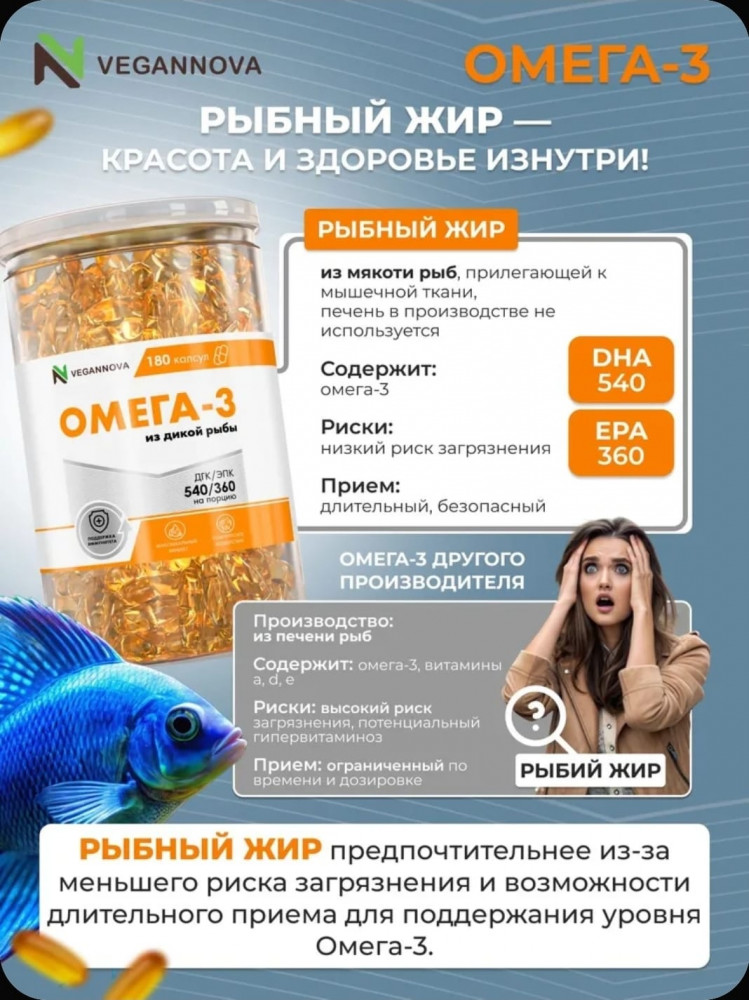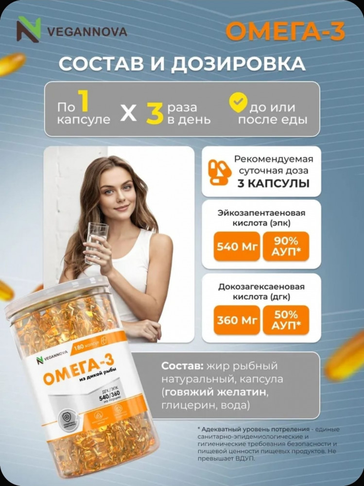 💳 Оплатить за товар можно при получении 🇰🇿 Есть бесплатная доставка по Казахстану от 1 дня 🎁 Копите бонусы с каждой покупки Капсулы Омега-3 предназначены для комплексной поддержки организма и здоровья: для женского здоровья и поддержания гормонального баланса, для красоты кожи, волос и ногтей, для мужского здоровья и репродуктивной функции, для тонуса и укрепления мышц, для общего укрепления организма и повышения жизненной энергии, для укрепления связок и суставов, для улучшения зрения, для улучшения кровообращения, для повышения умственной активности и концентрации, для профилактики сердечно-сосудистых нарушений, а также для снижения уровня стресса, тревожности и поддержки нервной системы. |