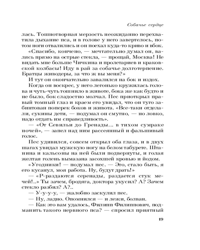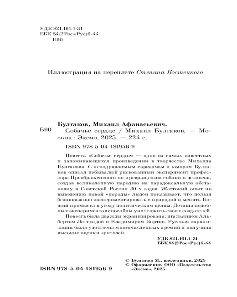 💳 Оплатить за товар можно при получении 🇰🇿 Есть бесплатная доставка по Казахстану от 1 дня 🎁 Копите бонусы с каждой покупки Серия: Яркие страницы (обложка) «Собачье сердце» — одно из самых известных и запоминающихся произведений Михаила Булгакова. С неподражаемым сарказмом и юмором Булгаков описал небывалый рискованный эксперимент профессора Преображенского по превращению собаки в человека, создав великолепную пародию на парадоксальную обстановку Советской России 30-х годов. Жестокий опыт по выведению новой «породы» людей показывает, что нельзя безнаказанно экспериментировать с природой и менять Божий Промысел в угоду политическим целям. Детища подобных экспериментов способны уничтожить своих создателей. |