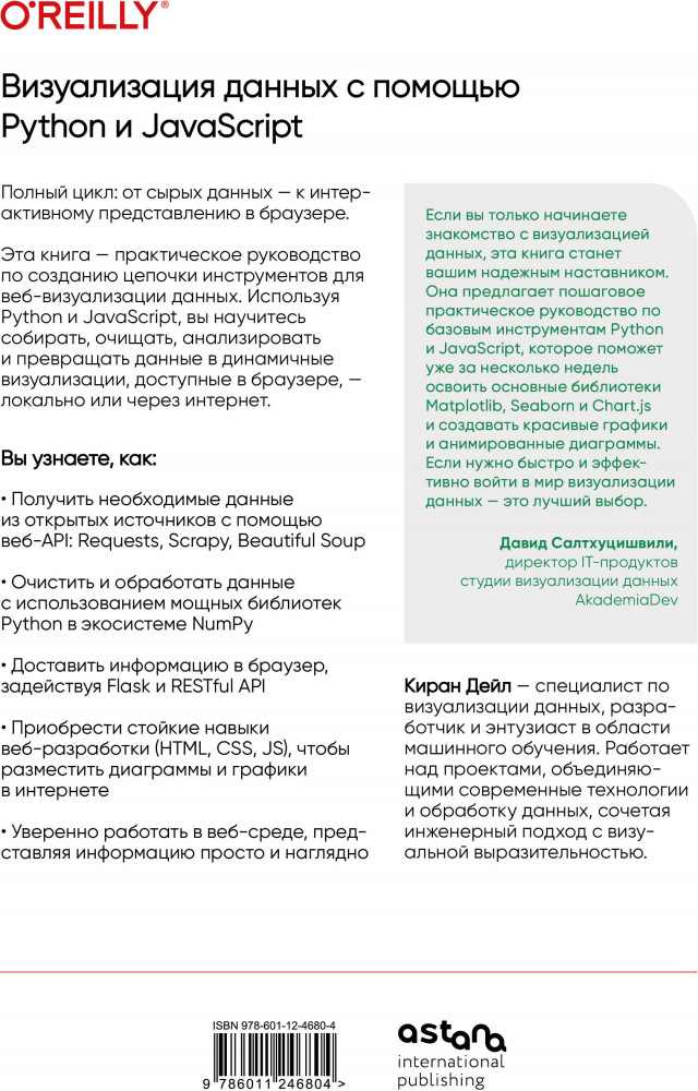 💳 Оплатить за товар можно при получении 🇰🇿 Есть бесплатная доставка по Казахстану от 1 дня 🎁 Копите бонусы с каждой покупки Серия: O'Reilly. Книги по программированию Перед вами — не просто сборник теорий, а практическое руководство, которое проведет через весь процесс превращения данных в понятные, живые визуализации, которые ясно передают смысл информации. |