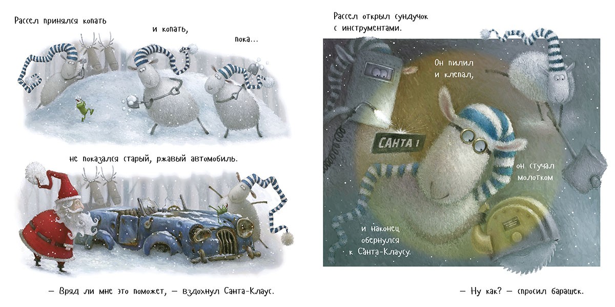 В данный момент этот товар отсутствует в продаже. Возможно, у нас найдется аналогичный или похожий товар здесь. Серия: Книжки-картинки Мила и добрая зимняя история про барашка Рассела: Санта-Клаус пролетал над Светлячковым лесом, и тут... у него сломались сани. Неужели Рождество придётся отменить и все дети, овечки и лягушата останутся без подарков?! Но на помощь приходит барашек Рассел. Немного труда и фантазии - и даже самый обыкновенный барашек может сотворить настоящее рождественское чудо!