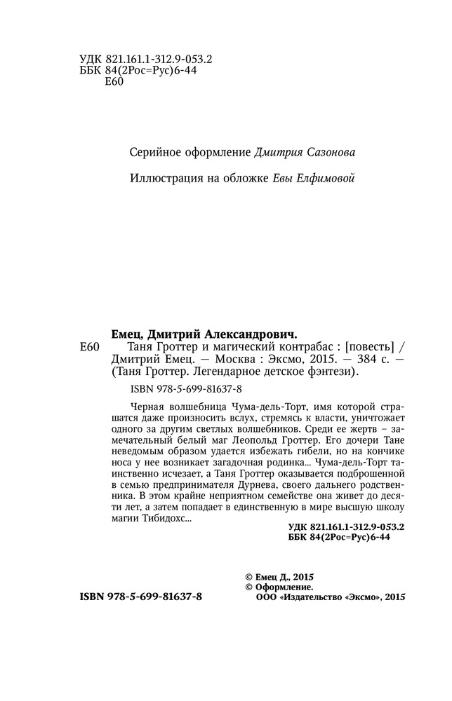 Таня Гроттер и магический контрабасВ данный момент этот товар отсутствует в продаже. Возможно, у нас найдется аналогичный или похожий товар здесь. Серия: Таня Гроттер. Легендарное детское фэнтези Черная волшебница |