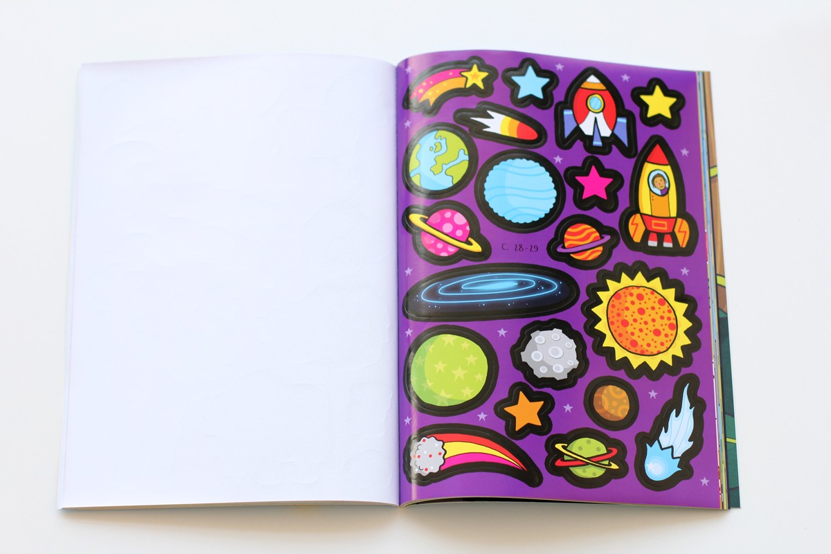 Наклейки просто отменные: яркие и интересные. Задания и игры великолепны. Нет слов. Единственное - формат альбома. Т.е. мягкий переплет и не удобно ее раскрывать полностью. Но к этому приспосабливаешься. Вся серия подобных книг издательства - великолепная!