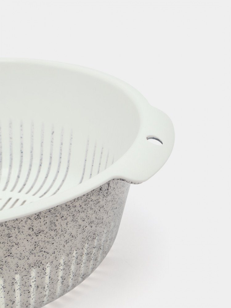 💳 Оплатить за товар можно при получении 🇰🇿 Есть бесплатная доставка по Казахстану от 1 дня 🎁 Копите бонусы с каждой покупки Серия: Bergamo Универсальная миска-дуршлаг «Bergamo» от бренда Idiland — практичный аксессуар для кухни, сочетающий функции емкости для смешивания и дуршлага. Изготовлена из прочного пластика, она легкая, удобная и устойчивая к повреждениям. Светло-серый цвет с эффектом гранита придает изделию стильный внешний вид, гармонично вписываясь в современный интерьер. Идеально подходит для мытья овощей, ягод, а также для слива воды после варки макарон и круп. |