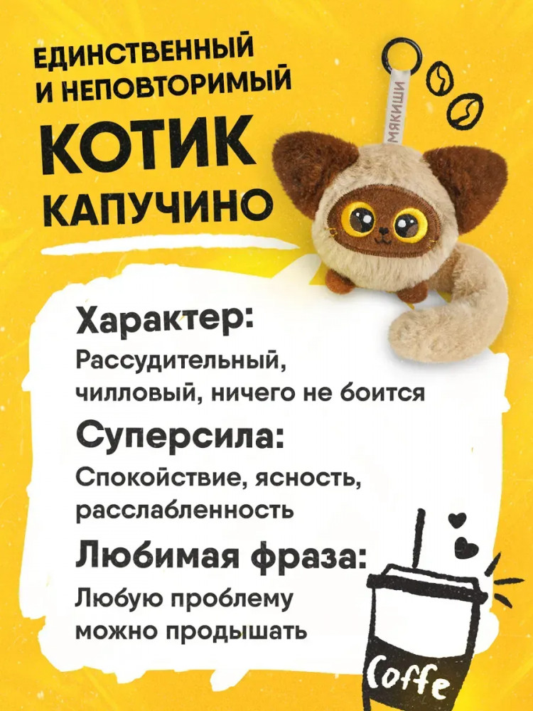 Мякиши Игрушка-брелок мягкая «Котик Капучино»