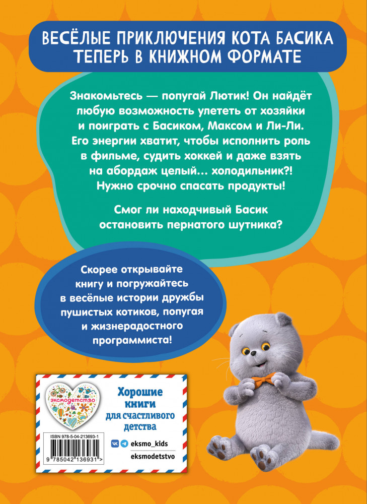 💳 Оплатить за товар можно при получении 🇰🇿 Есть бесплатная доставка по Казахстану от 1 дня 🎁 Копите бонусы с каждой покупки Серия: Кот Басик. Официальные издания Герои любимого мультсериала «Кот Басик» теперь в книжном формате! Знакомьтесь — попугай Лютик! Этот сосед в перьях найдёт любую возможность, чтобы улететь от хозяйки и поиграть с Басиком, Максом и Ли-Ли. Его энергии хватит на то, чтобы исполнить роль в фильме о динозаврах, судить хоккей и даже взять на абордаж целый... холодильник?! Нужно срочно спасать продукты! Что придумали Басик и Макс, чтобы остановить пернатого шутника? Читайте в нашей книге! |