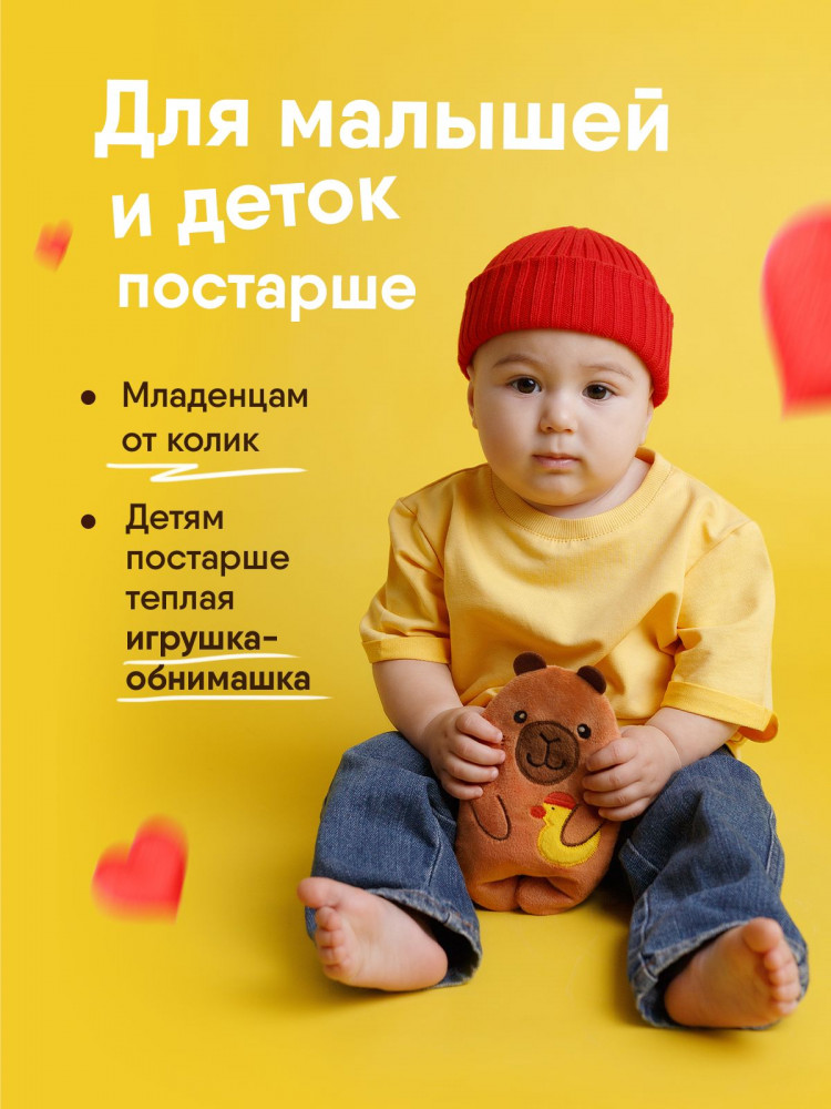 Серия: Разогрелка Эта грелка формата и размера популярного мишки Бонни Мякиши станет стильным и функциональным помощником для малышей и взрослых. Игрушка-грелка с вишневыми косточками сочетает в себе заботу о здоровье и яркий, трендовый образ. Капибара, так же как желтая уточка, — популярный герой, покоривший сердца детей и взрослых по всему миру.