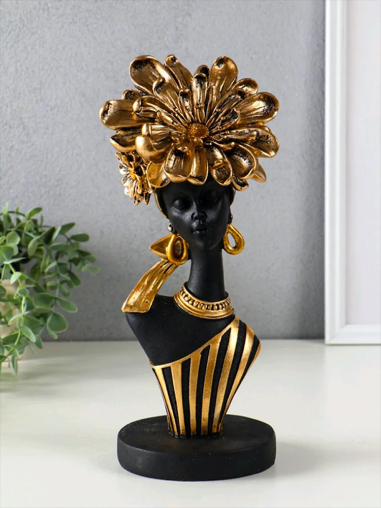 Изящная декоративная статуэтка, сочетающая классическую пластику бюста с выразительными художественными деталями. Станет утончённым акцентом в интерьере, подчеркнёт вкус владельца и добавит пространству ноту эстетического изящества. Бюст изображает девушку в полосатом наряде, держащую в руках цветок золотистого цвета.