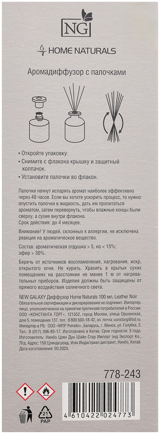 New Galaxy Аромадиффузор «Home Naturals Leather Noir»