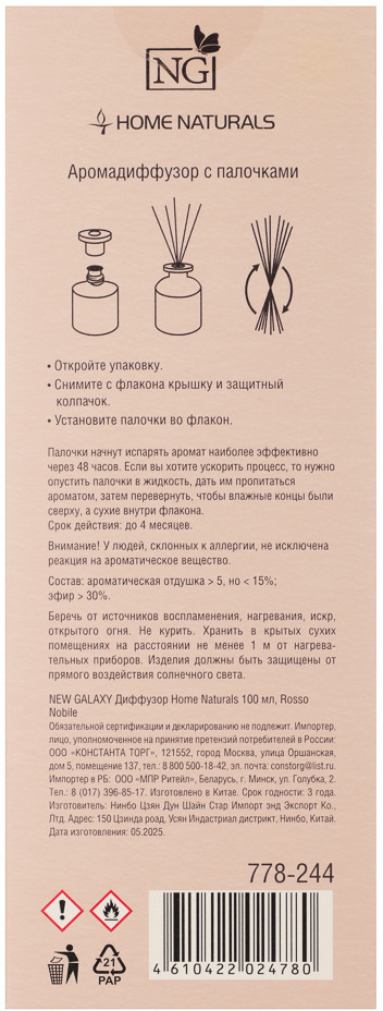 New Galaxy Аромадиффузор «Home Naturals Rosso Nobile»