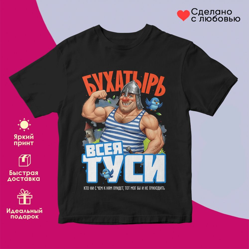 TopPoshiv Футболка с принтом «Бухатырь всея туси (чер)»