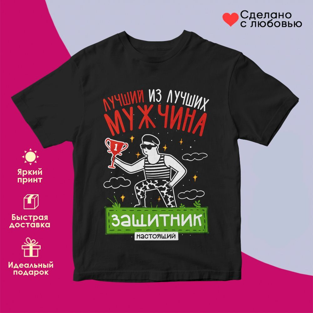 TopPoshiv Футболка с принтом «Лучший из лучших мужчина! Настоящий защитник (чер)»
