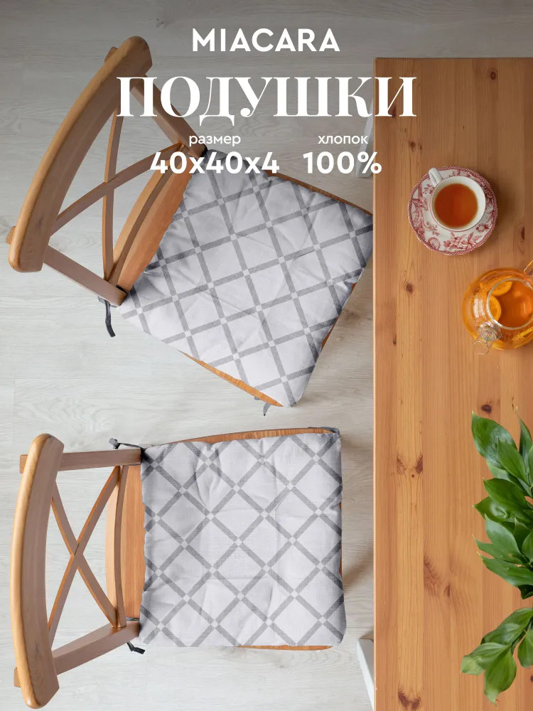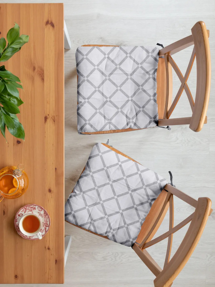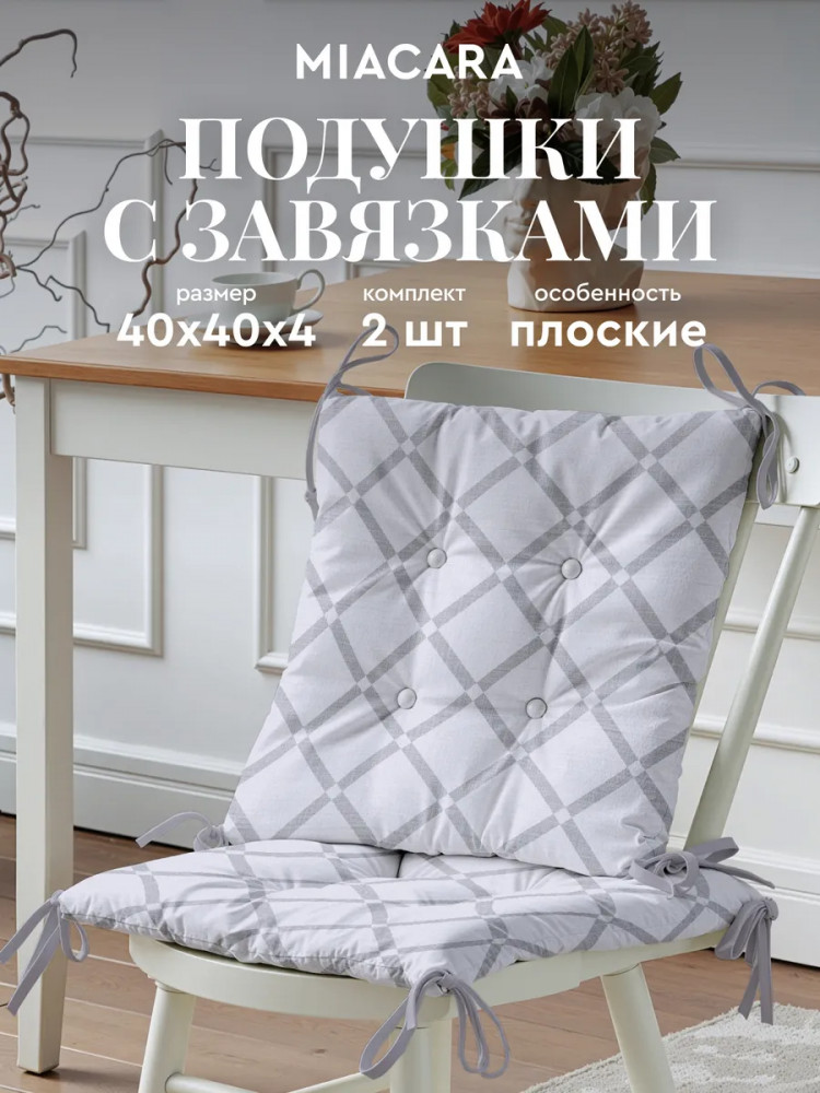 Набор квадратных подушек на стулья (40×40×4 см, 2 шт.) идеально дополнит интерьер кухни или гостиной. Завязки по углам будут прочно фиксировать подушки на стульях, обеспечивая вам максимальный комфорт при посадке. Чехол из рогожки (100% хлопок) имитирует лен и отличается стойкостью к износу, а мягкий и упругий наполнитель подушечек хорошо сохраняет форму. Подушки плотностью 165 г/м2 — настоящая находка для обладателей стульев с твердым сидением. Они позволят сделать ваш отдых гораздо комфортнее.