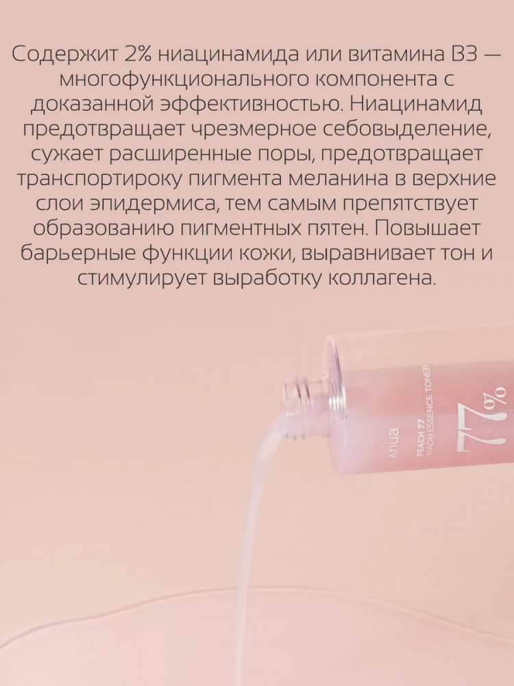 Anua Тонер для лица с ниацинамидом и персиком Toner peach