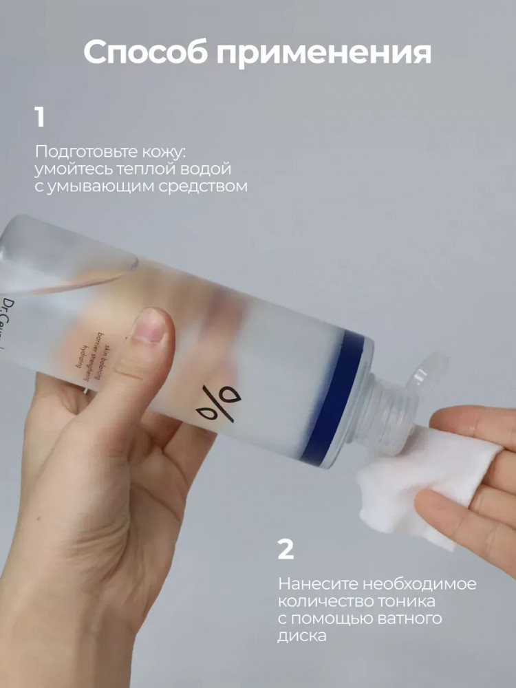 Способ применения: использовать после этапа очищения. Нанесите небольшое количество тонера на ватный диск, бережно протрите лицо.