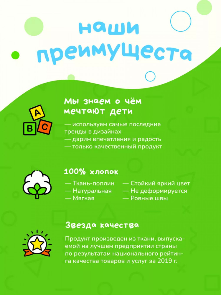 | Торговая марка «Непоседа» предлагает широкий ассортимент продукции для детей. Мы выпускаем комфортные комплекты постельного белья, уютные покрывала и веселые декоративные подушки, которые добавят радость и стиль в детскую комнату. Наше постельное белье изготавливается в городе Иваново из высококачественных материалов с учетом потребностей детской кожи. Мы понимаем важность здорового сна для растущего организма, поэтому каждый наш комплект спроектирован с заботой о комфорте и безопасности... |